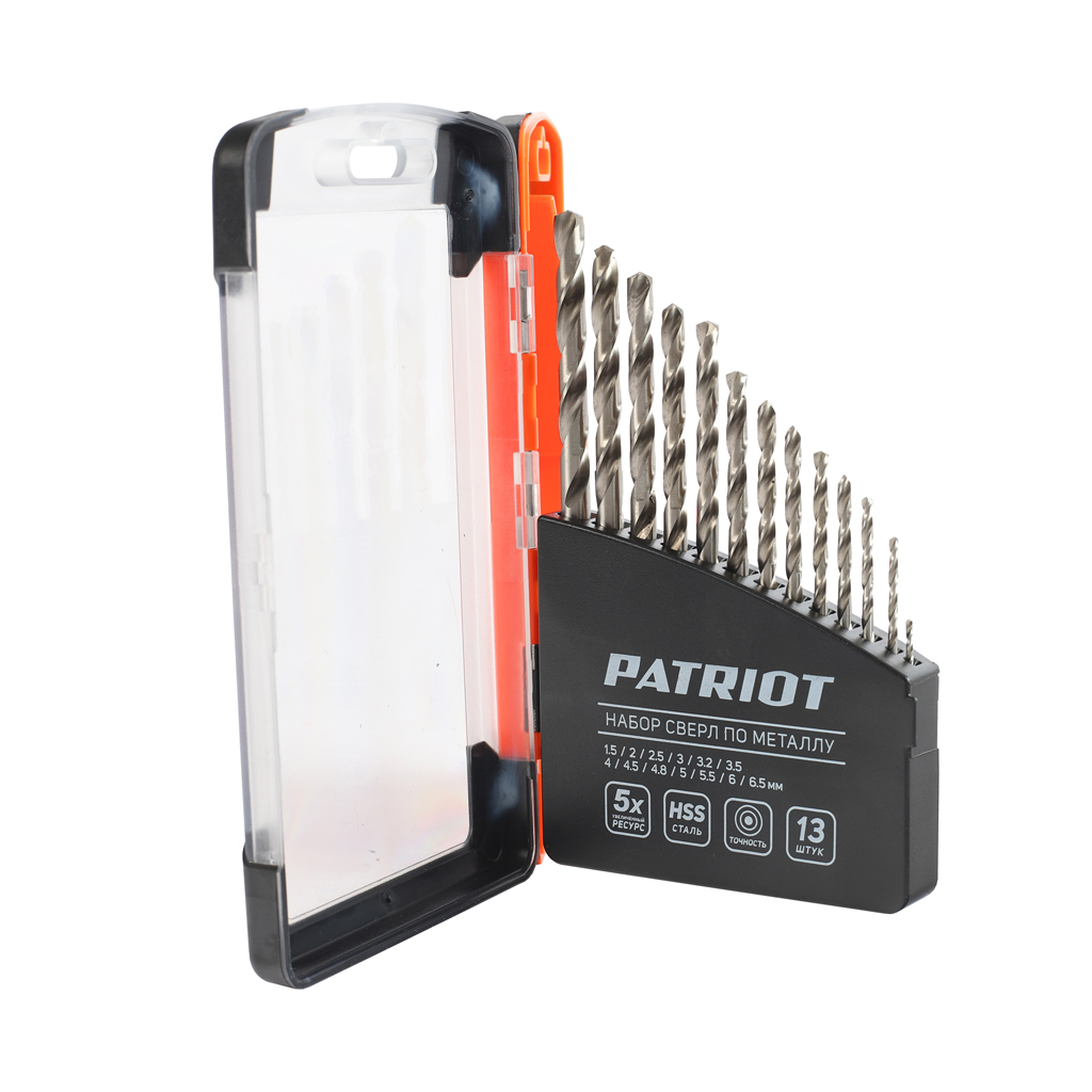 Набор сверл по металлу 1,5-6,5мм 13шт. HSS PATRIOT быстрорежущая сталь, в пластиковом боксе