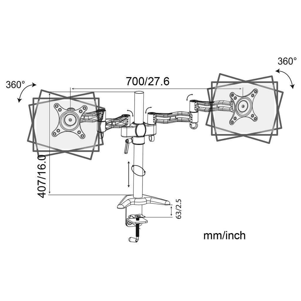 Кронштейн для телевизора Cactus CS-VM-D08-AL серебристый 13"-27" макс.8кг настольный поворот и наклон