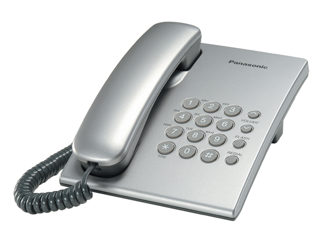 Телефон Panasonic KX-TS 2350RUS серебристый металик (повторный набор последнего номера, кнопка "флэш", регулировка громкости звонка, регулировка громкости динамика, возможность установки на стене)