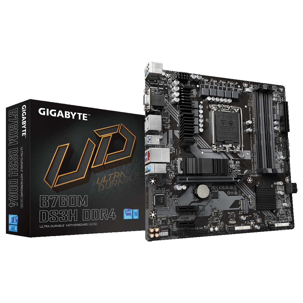 Материнская плата Socket-1700 Gigabyte B760M DS3H Intel B760, 4xDDR4-3200 МГц, 1xPCI-Ex16, 2xM.2, Micro-ATX