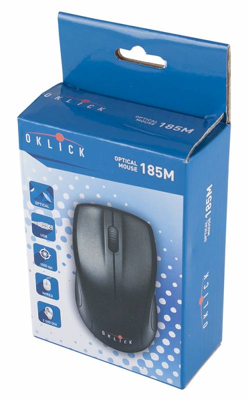 Мышь проводная Oklick 185M черный оптическая (1000dpi) USB (3but), 3кнопки, 1.6 м