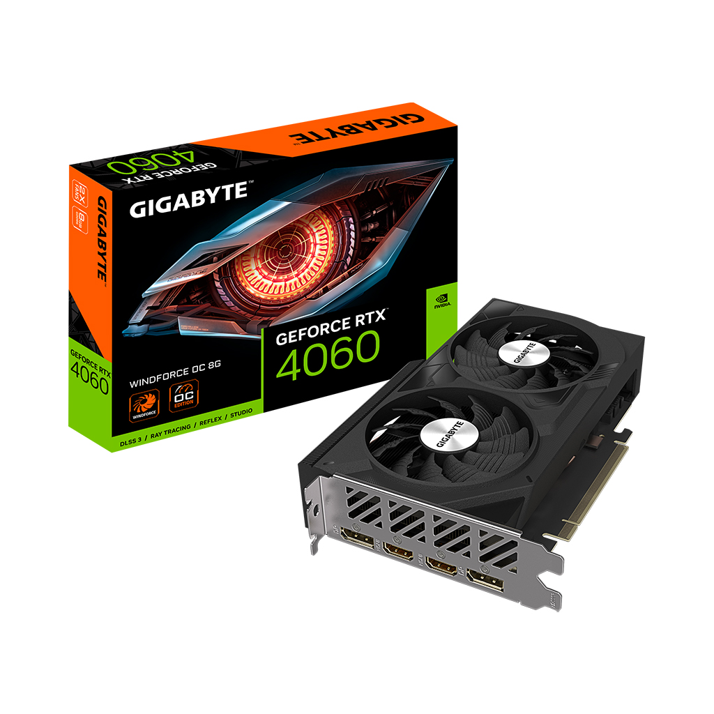 Видеокарта PCI-E 8Gb GeForce RTX4060 Gigabyte WINDFORCE OC PCI-E 4.0 GDDR6, 128 бит, DisplayPort x2, HDMI x2, GPU 1830 МГц