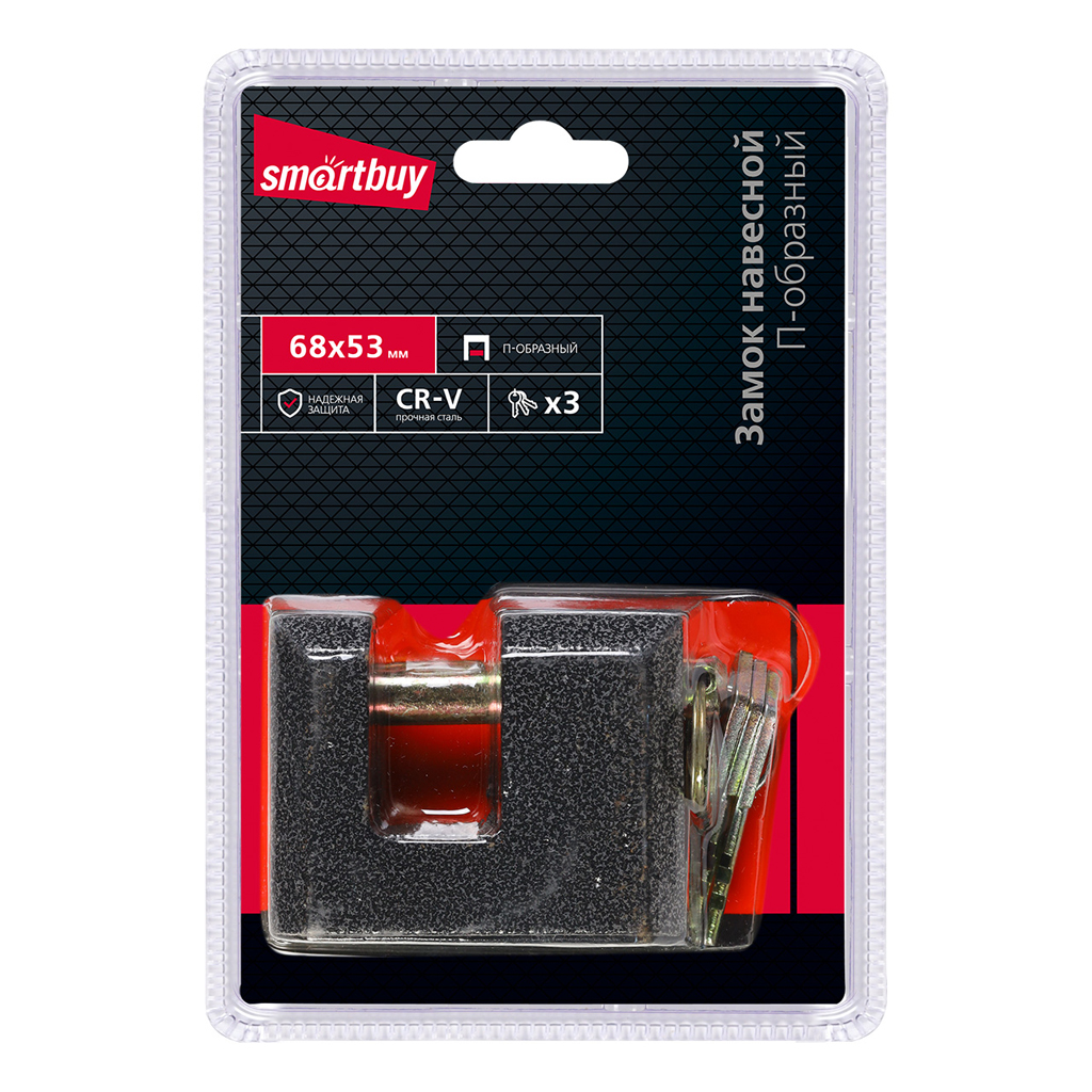 Замок навесной П-образный, корпус 68*53 мм, 3 кл., Smartbuy