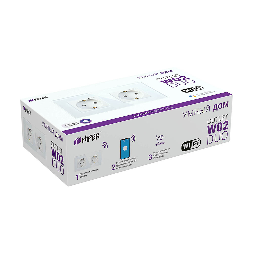 Умная розетка HIPER встраиваемая Wi-Fi двойная розетка HIPER IoT Outlet W02 Duo 2х2500Вт, белая