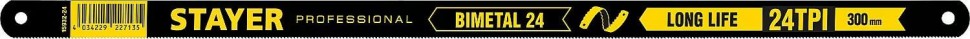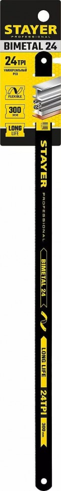 Полотно для ножовки по металлу 300мм биметаллическое универсальный рез. 24TPI, высокоуглеродистая сталь, Stayer (15932-24-1)