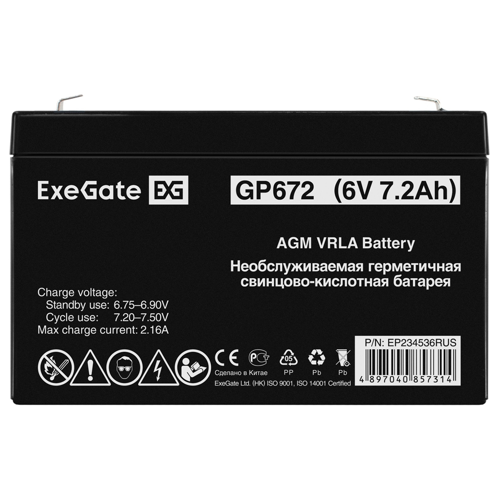 Аккумулятор UPS 6V 7Ah ExeGate GP672 (клеммы F1)