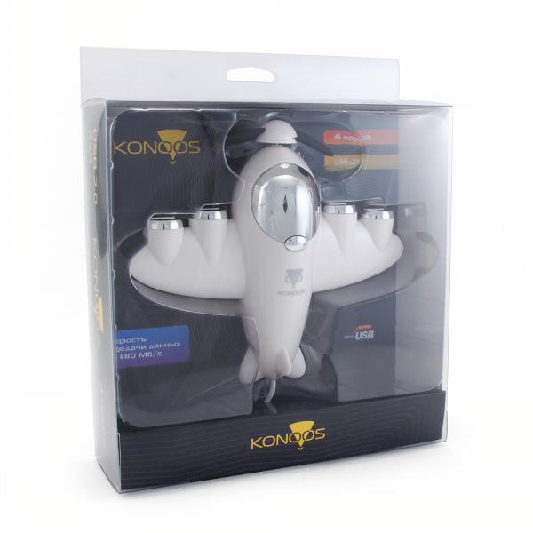 Концентратор USB 2.0 4 порта, Konoos UK-39 аэроплан, блистер