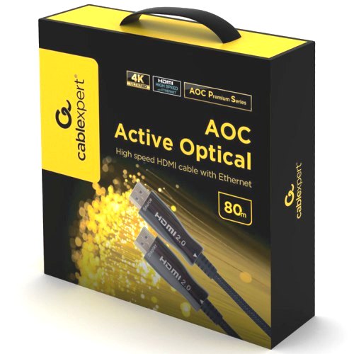 Кабель HDMI оптический Cablexpert, 80м, v2.0, 19M/19M, AOC Premium Series, позол.разъемы, экран, коробка