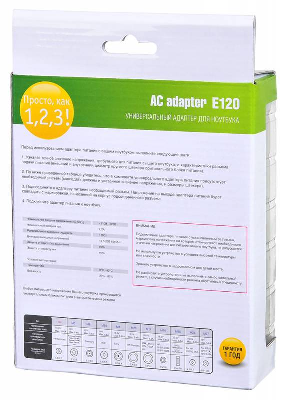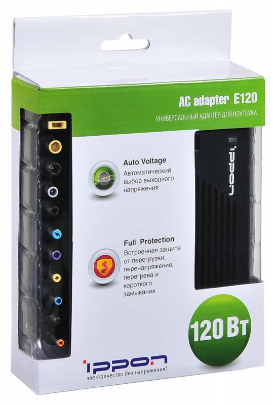 Адаптер для ноутбука универсальный 19V 120Вт Ippon E120 автоматический 120W 18.5V-20V 11-connectors 6.0A от бытовой электросети LED