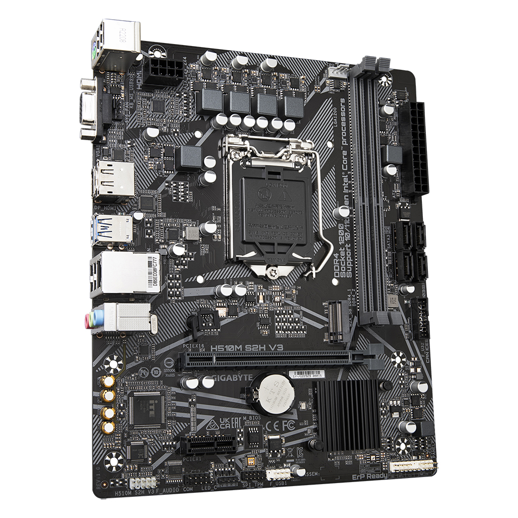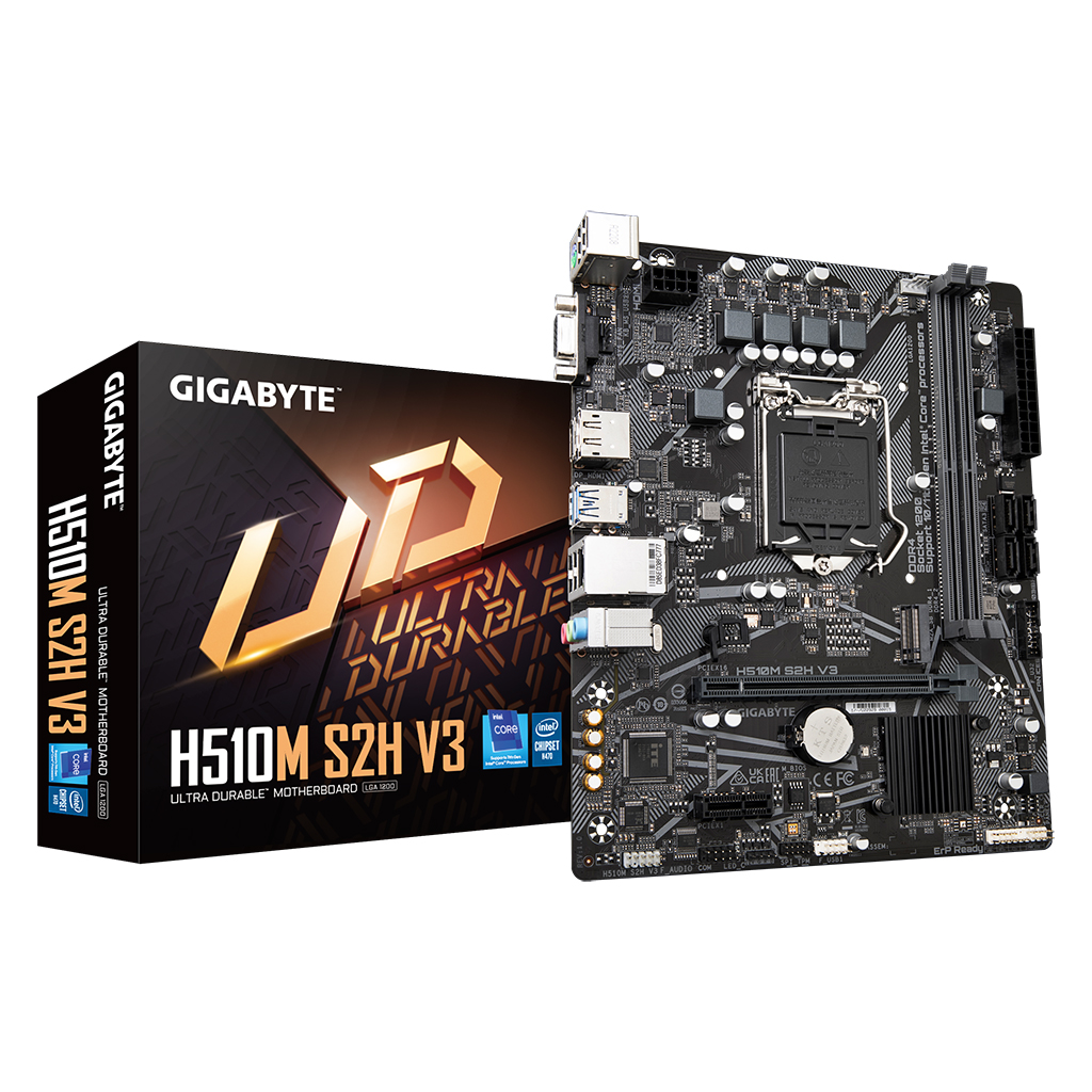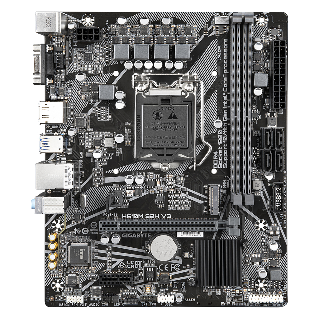 Материнская плата Socket-1200 Gigabyte H510M S2H V3, Intel®H470, 2xDDR4-3200, D-SUB+HDMI+DP, 1xPCI-Ex16, 1xPCIEx1, 4xSATA3(RAID 0/1/5/10), 1xM.2, 8 Ch Audio, GLan, (4+4)xUSB2.0, (2+2)xUSB3.2, 1xPS/2, mATX, RTL 10
