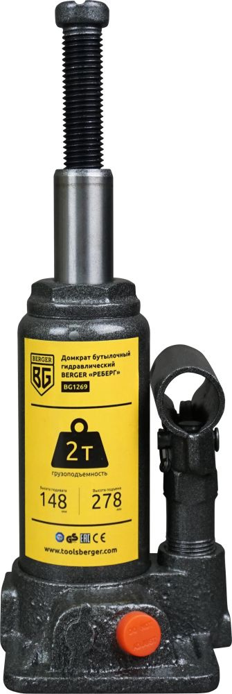 Домкрат гидравлический бутылочный Berger Реберг бутылочный гидравлический черный (BG1269)