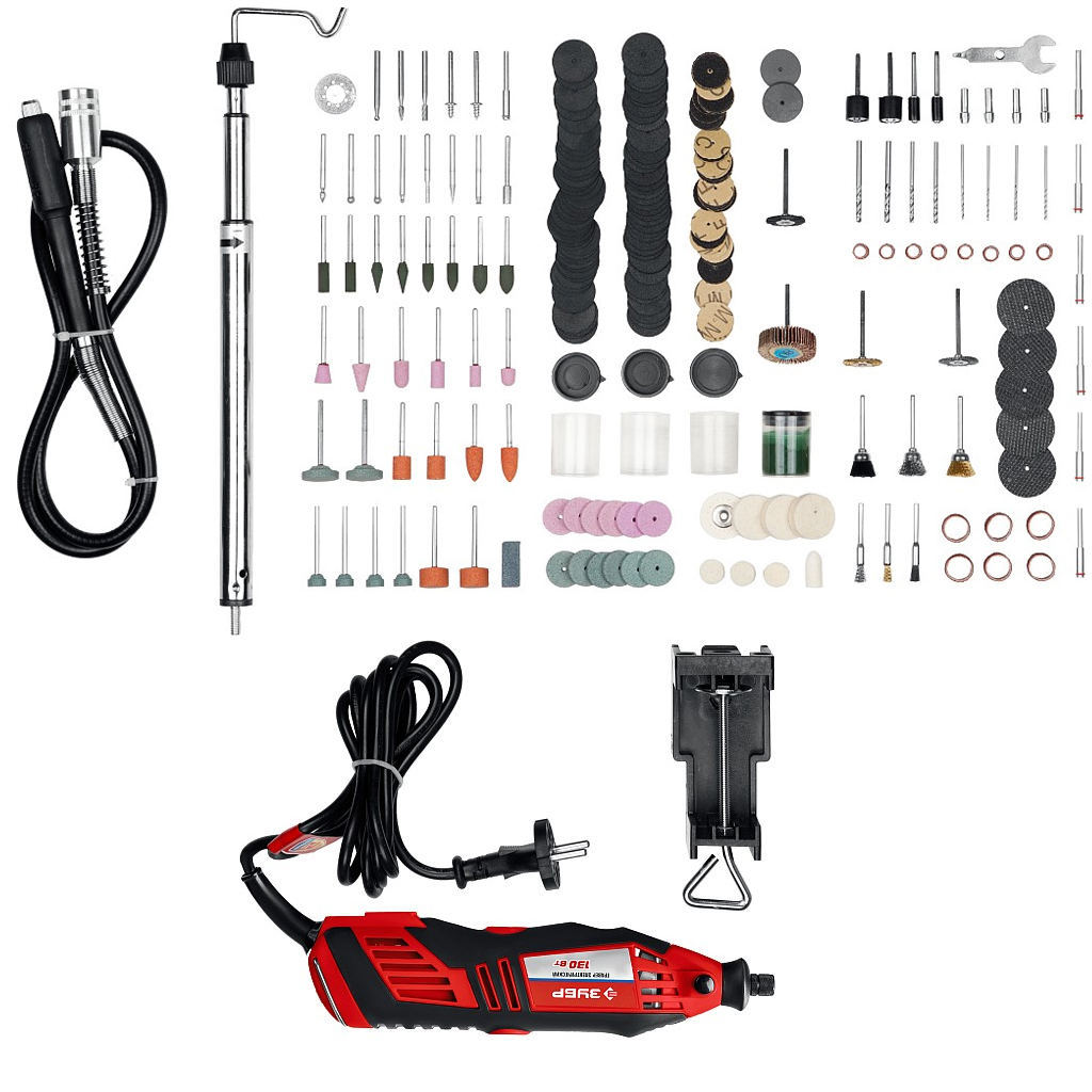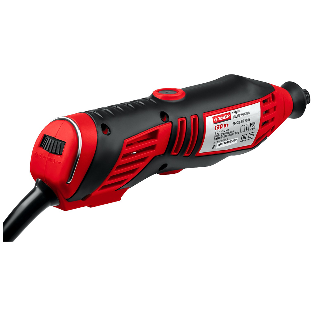 Гравер электрический Зубр ЗГ-130ЭК H242 130Вт, 8000-30000 об/мин, гибкий вал, цанга 2,4-3,2мм, регулировка оборотов, набор насадок 242шт, кейс, 2.1кг