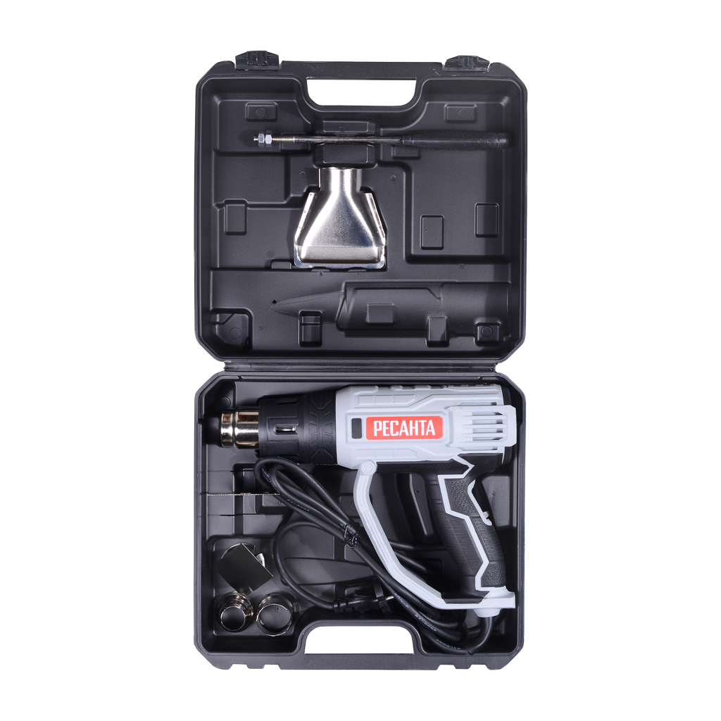 Фен строительный Ресанта ФЭ-2000К 2000Вт, 350-600°C, 300-500л/мин, защита от перегрева, 2 режима работы, 0,75кг (4 насадки, кейс) 75/2/1