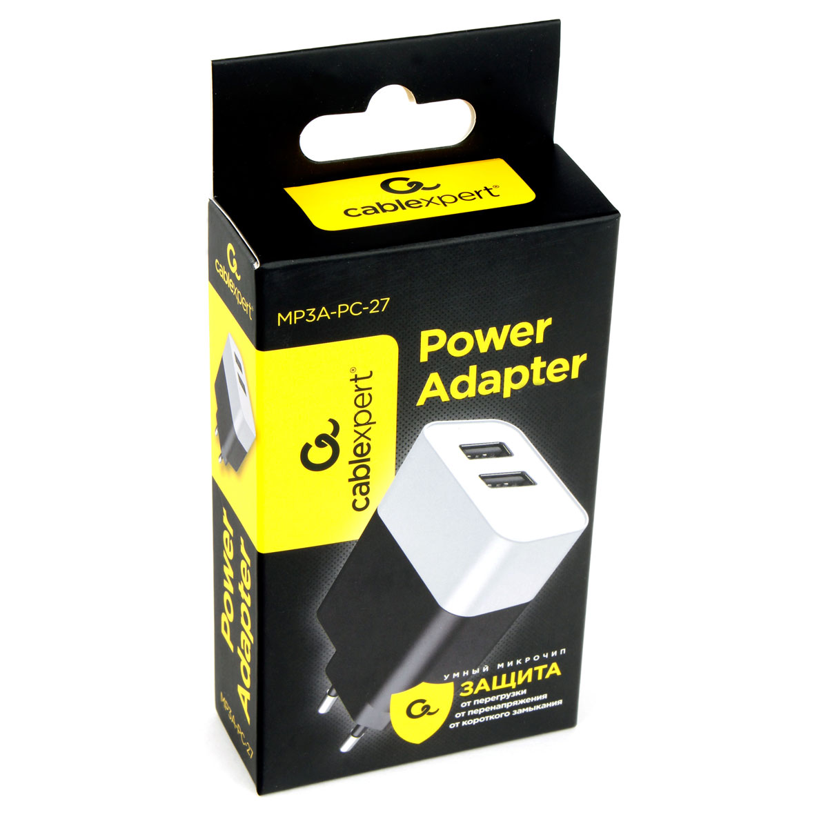 Зарядное устройство сетевое 2хUSB 3.1А Gembird MP3A-PC-27W белый (высокий ток - подходит для быстрой зарядки Внешних акумов)