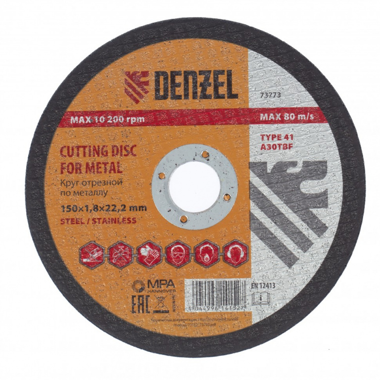 Круг отрезной 150х1,8х22,2мм по металлу + нерж. Denzel 73773