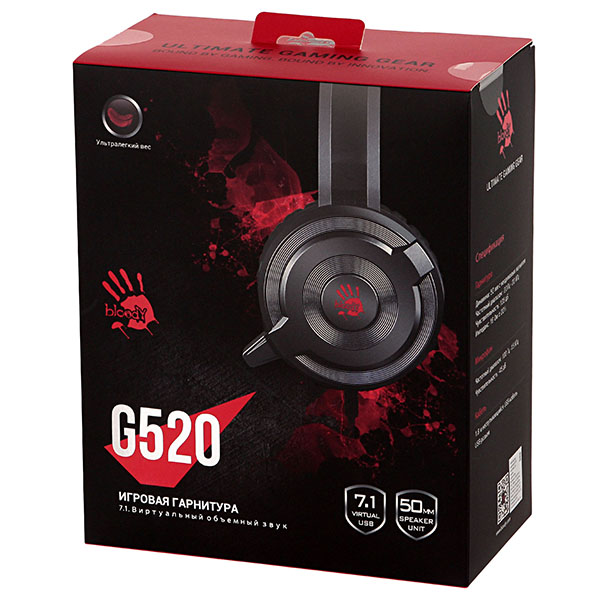 Наушники+микрофон A4 Bloody G520S серый 1,8м мониторные USB