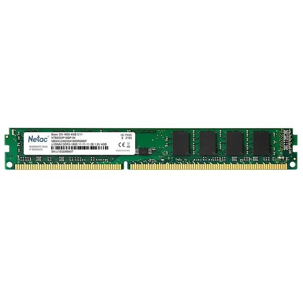 Память DIMM DDRIII 4Gb 1600Mhz Netac NTBSD3P16SP-04 Basic RTL PC3-12800 CL11 DIMM 240-pin 1.5В