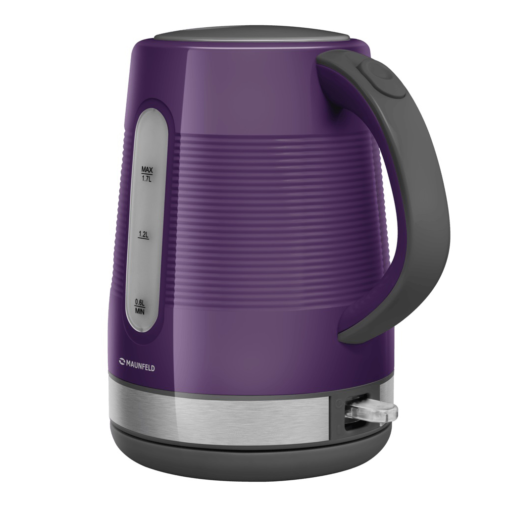 Чайник MAUNFELD MGK-631VL объем : 1.7 л; мощность : 2200 Вт; нагревательный элемент : закрытый; автоотключение при отсутствии воды, индикаторы : включения; уровня воды, вращение на 360 гр. материал корпуса : пластик; цвет: фиолетовый.