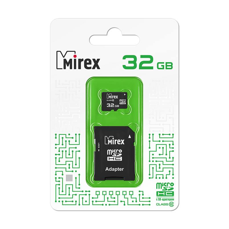 Карта памяти Micro-SD 32Gb Class 10, MIREX + адаптер 13613-AD10SD32