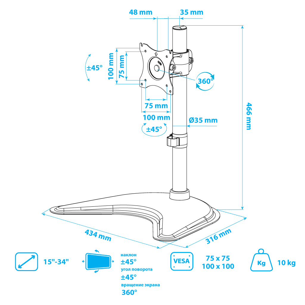 Кронштейн для 1 монитора настольный Arm Media LCD-T51 черный 15"-32" макс.10кг настольный поворот и наклон верт.перемещ.