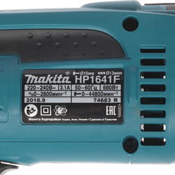Дрель Makita HP1641F ударная 680Вт патрон:1.5-13мм быстрозажимной, 2800об/мин, 44800уд/мин, сталь-13мм, дерево-30мм, бетон-16мм, реверс, регулировка оборотов, подсветка, 1,8кг