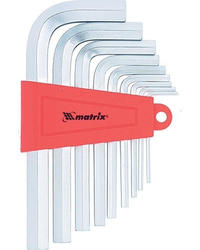 Набор ключей шестигранных HEX 2-12мм, 9шт., CrV, удлиненные, сатинированные, 12301 Matrix