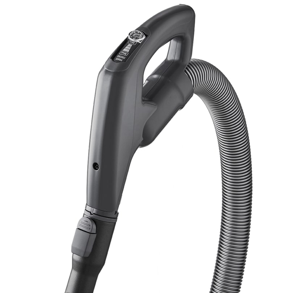 Пылесос LG VC5420NHTCW потребляемая мощность : 2000 Вт; мощность всасывания : 380 Вт; труба всасывания : телескопическая, сталь; пылесборник : пластиковый контейнер (циклон), 1.3 л; длина сетевого шнура : 5.3 м; регулятор мощности : на рукоятке.