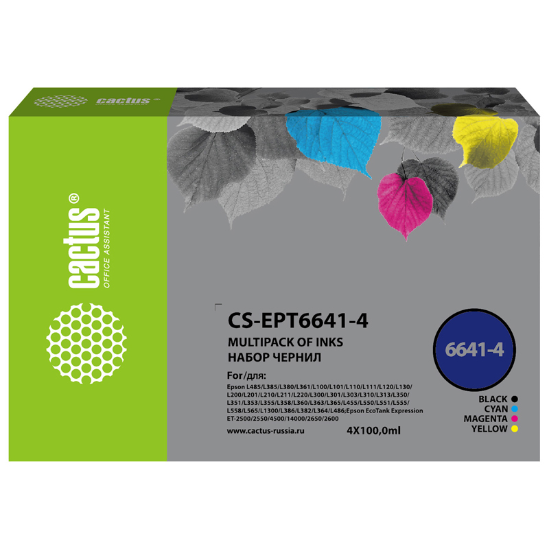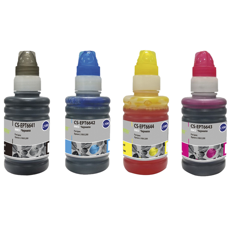 Чернила (комплект) Совместимый для Epson Cactus CS-EPT6641-4 T664 многоцветный набор 4x100мл для Epson L100/L110/L120/L132/L200/L210/