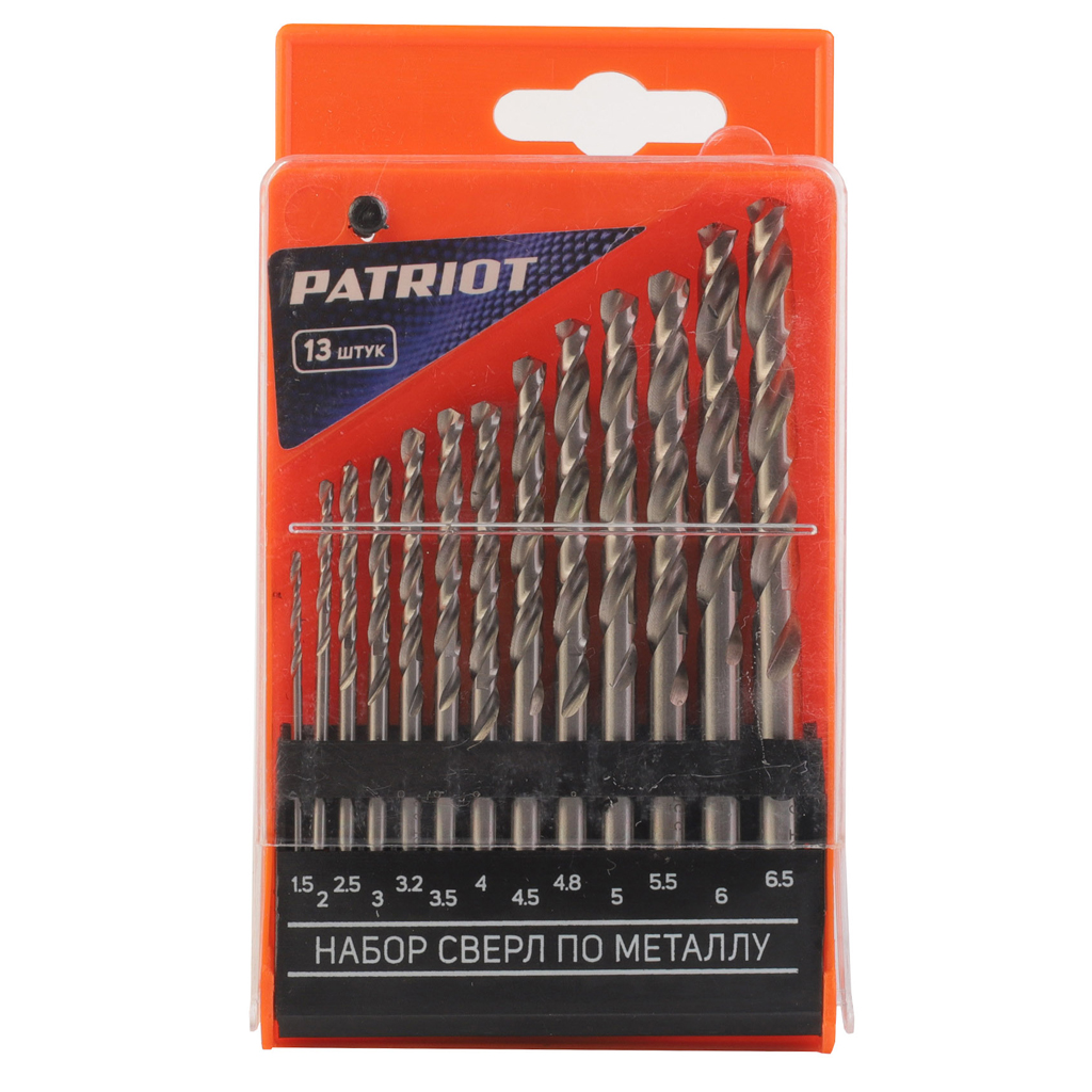 Набор сверл по металлу 1,5-6,5мм 13шт. HSS PATRIOT в пластиковом боксе