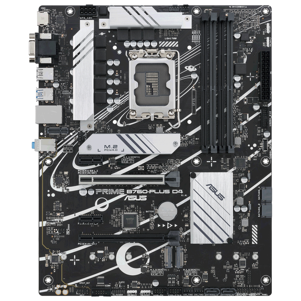 Материнская плата Socket-1700 Asus PRIME B760-PLUS D4 Intel B760, 4xDDR4-3200 МГц, 2xPCI-Ex16, 3xM.2, Standard-ATX 2.5Gg RAID+VGA+HDMI+DP