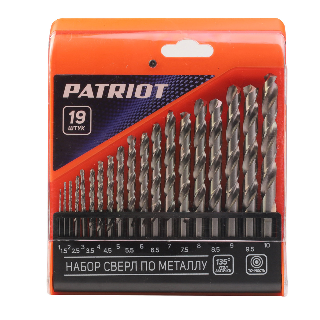 Набор сверл по металлу 1-10мм 19шт. HSS PATRIOT в пластиковом боксе