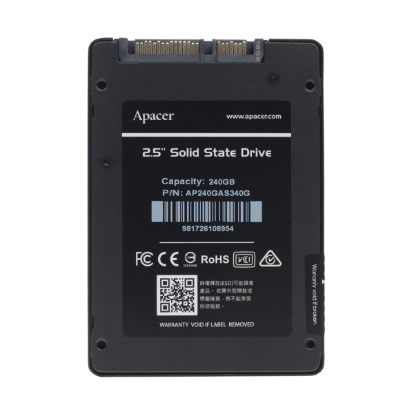 Твердотельный накопитель SSD 2.5" 240Gb Apacer AP240GAS340G-1 SATA 3D TLC Скорость записи 520 Мб/сек.Скорость чтения 550 Мб/сек.Форм-фактор 2,5" Толщина диска 7 мм Время наработки на отказ 1500000 ч.