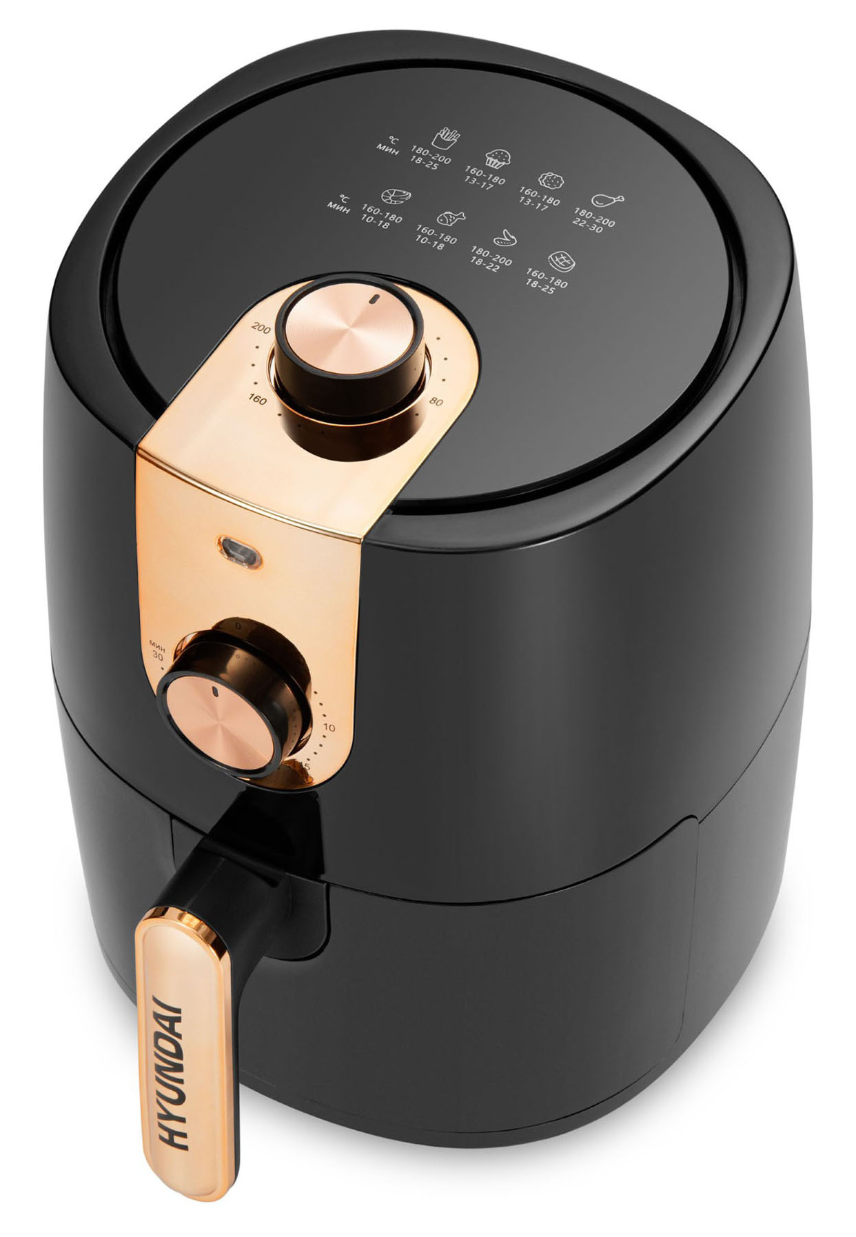 Аэрогриль Hyundai HYF-2057 1000Вт черный/золотистый