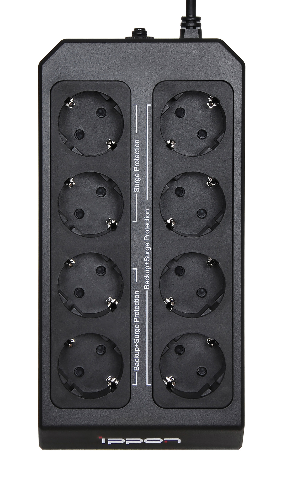 Источник БП Ippon Back Comfo Pro II 650 (360Вт 650ВА черный, line-interactive, диапазон напряжения 165-290 В, время переключения: 2-6 мс, макс.10 мс, Schuko CEE 7 - 6 шт, IEC 320 C13 - 2шт, USB type B, светодиодная индикация)