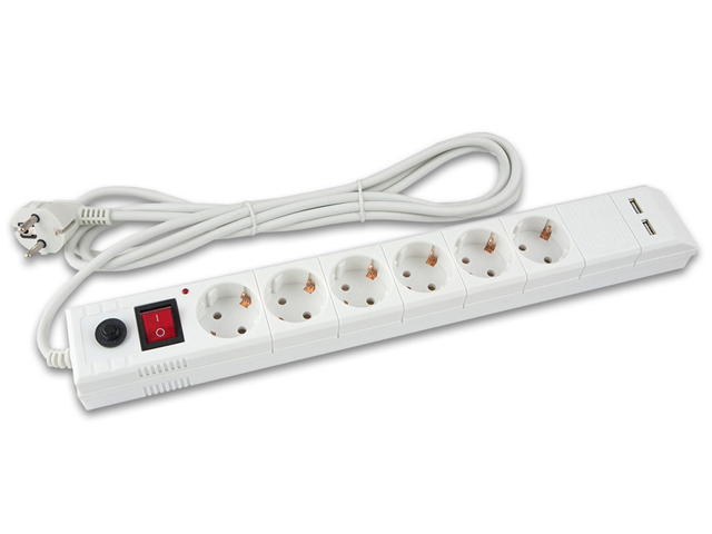 Сетевой фильтр 6 розеток 3м BURO + 2 USB, белый