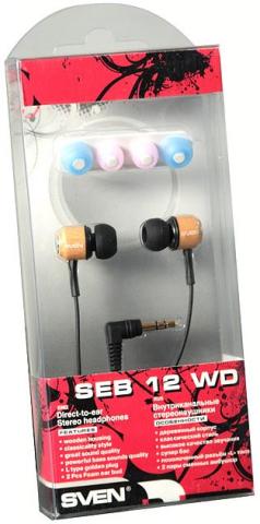 Наушники - вкладыши SVEN SEB 12 WD деревянный корпус, 18-22000, супербас, black