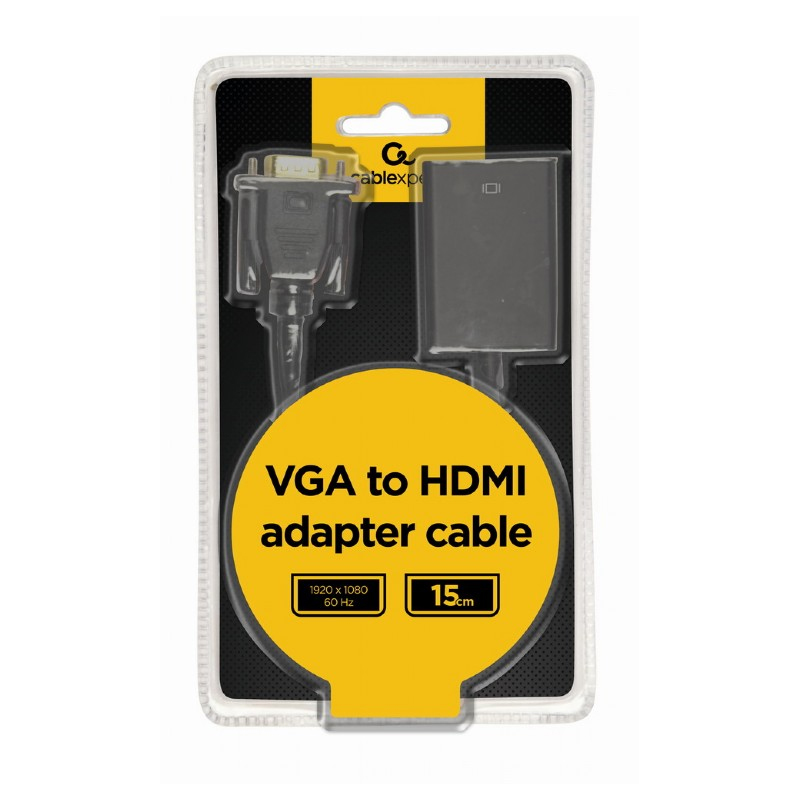 Переходник VGA (M) -> HDMI (F) Cablexpert A-VGA-HDMI-01, 19M/15F, длина 15см, аудиовыход Jack 3,5 (M), питание от USB Cablexpert (A-VGA-HDMI-01)