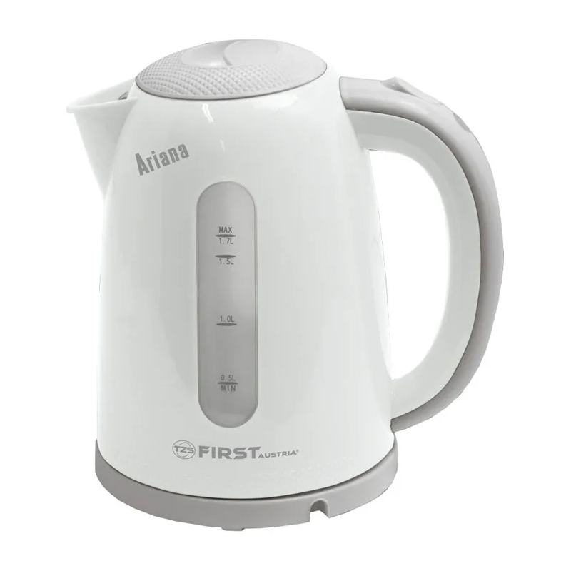 Чайник First FA-5427-2GR объем : 1.7 л; мощность : 2200 Вт; нагревательный элемент : закрытый; автоотключение при отсутствии воды, индикаторы : включения; уровня воды; отделение для шнура, вращение на 360 гр., материал корпуса : пластик.