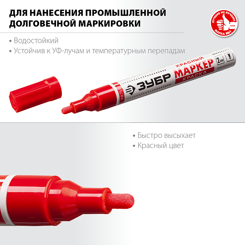 Маркер-краска Зубр МК-750 красный, круглый наконечник 06325-3