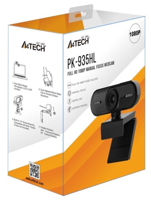 Камера WEB A4Tech PK-935HL черный 2Mpix (1920x1080) USB2.0 с микрофоном