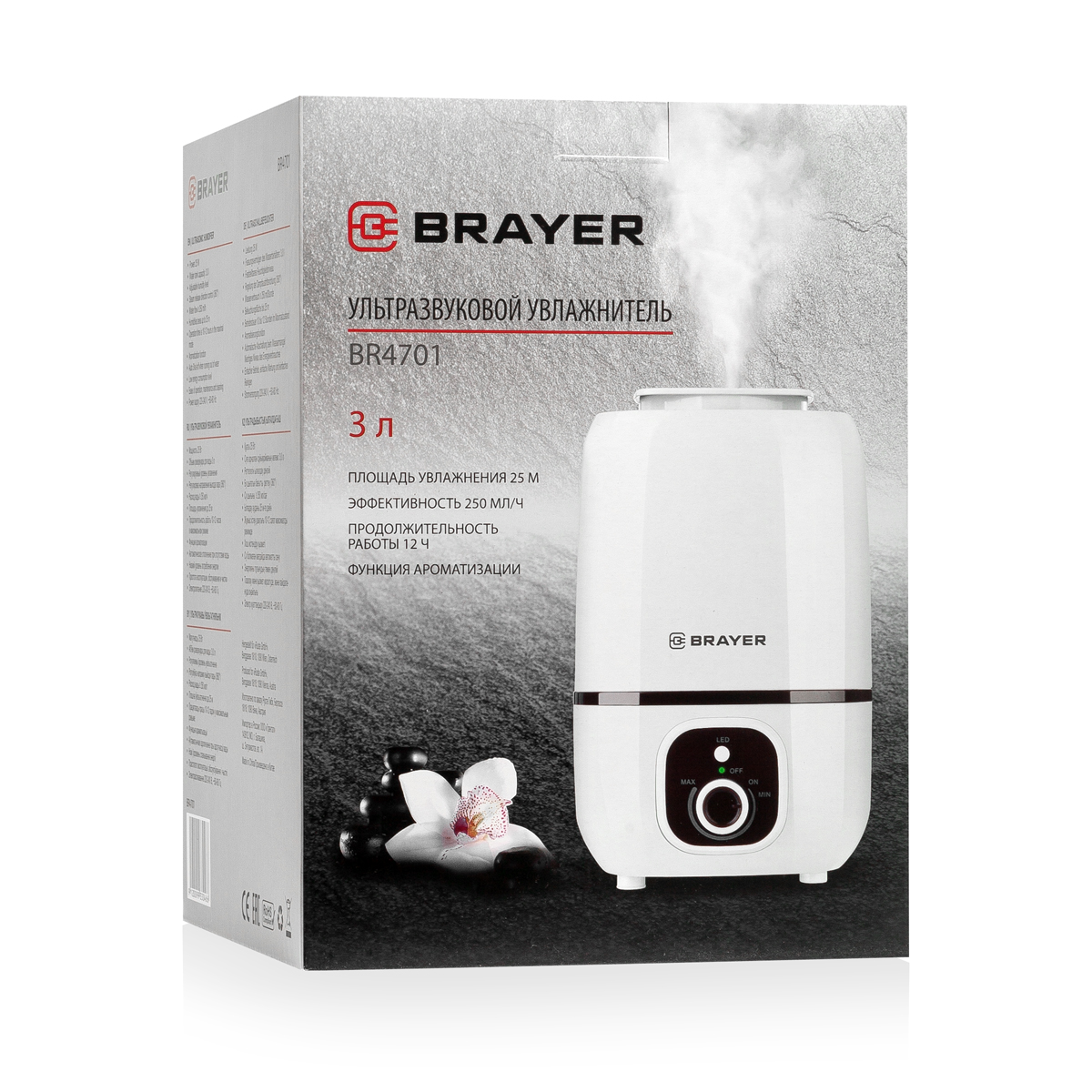 Увлажнитель воздуха BRAYER 4701BR ультразвуковой , 3 л, 25 м,( 40-80%), 13 ч., регулировка интенсивности