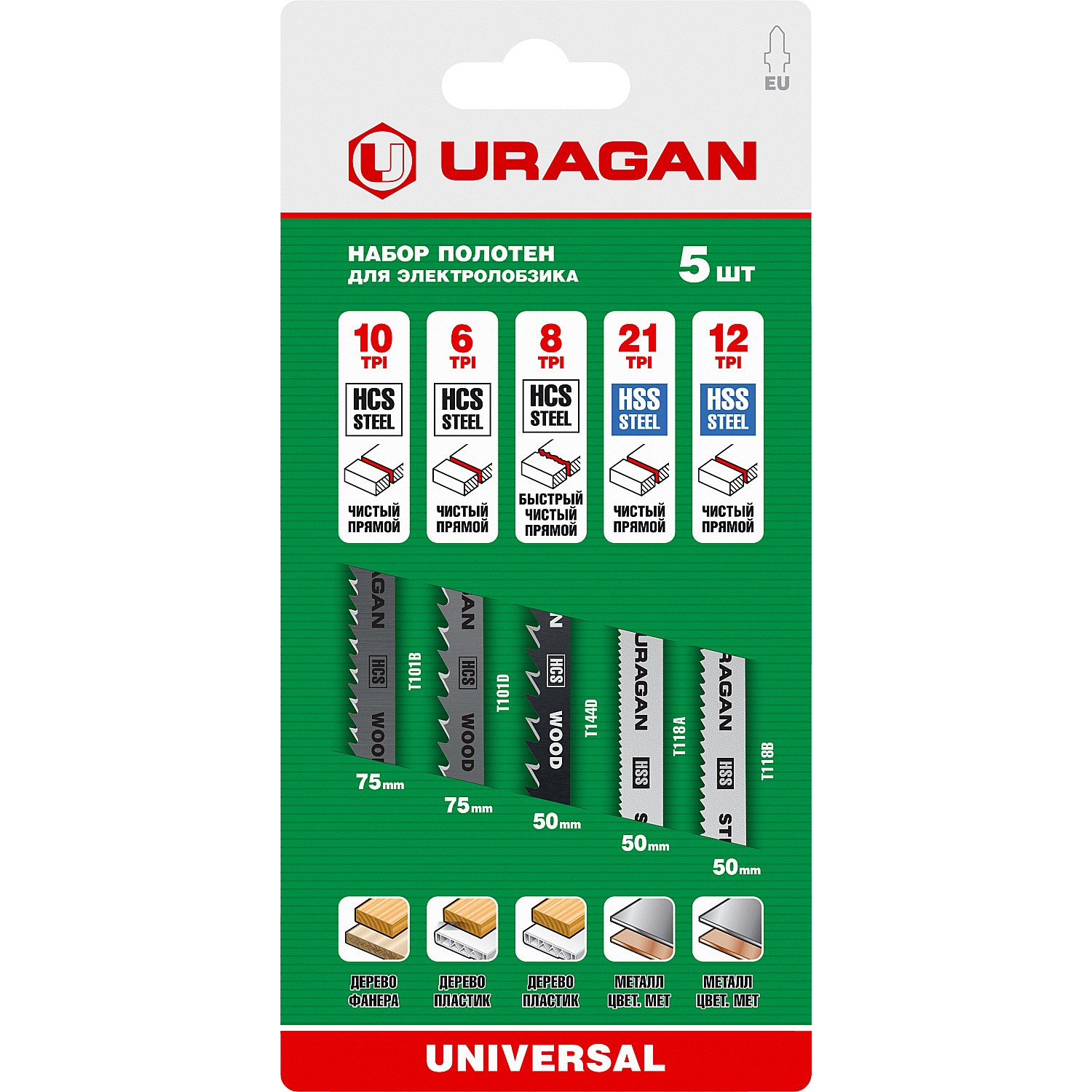 Набор пилок универсальные URAGAN 5 предм. (T101B, T144D, T101D, T118A, T118A) для лобзика (159489-H5_z02)