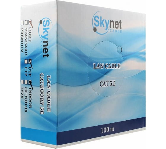 Кабель сетевой SkyNet Premium UTP indoor 4x2x0,46, медный, FLUKE TEST, кат.5e, однож., 100 м, box, серый