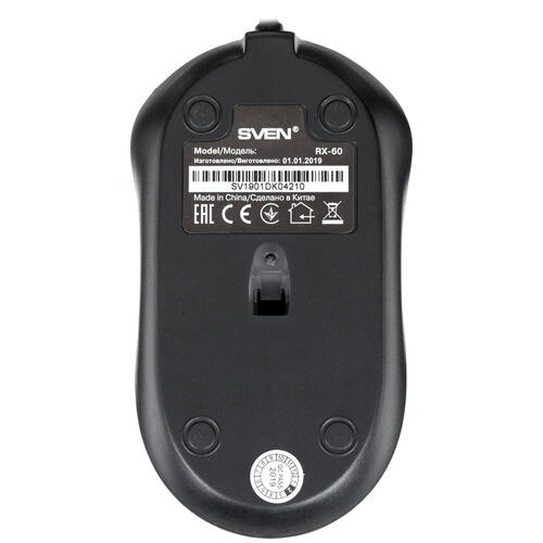 Мышь проводная Sven RX-60 USB чёрная ,2+1кл. 1000DPI, каб. 0,7м, автосмотка,