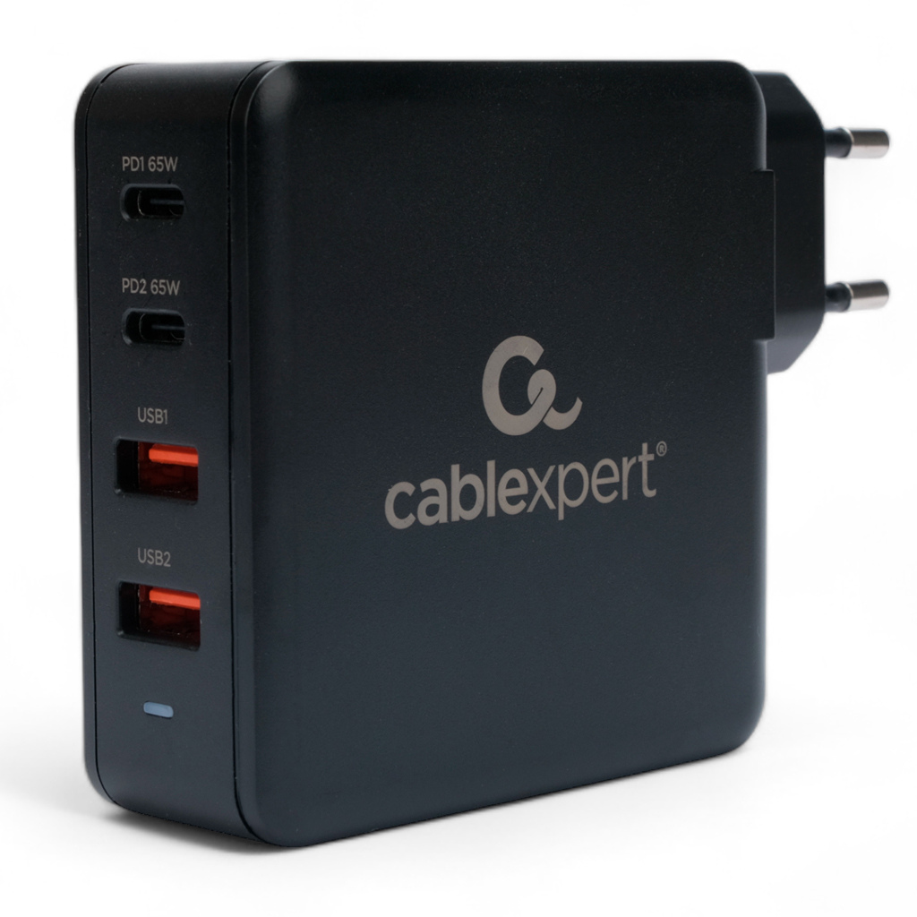 Зарядное устройство сетевое 2хUSB Cablexpert MP3A-PC-49 100Вт GaN, QC3.0/PD, 2хUSB, 2хType-C, черный, коробка