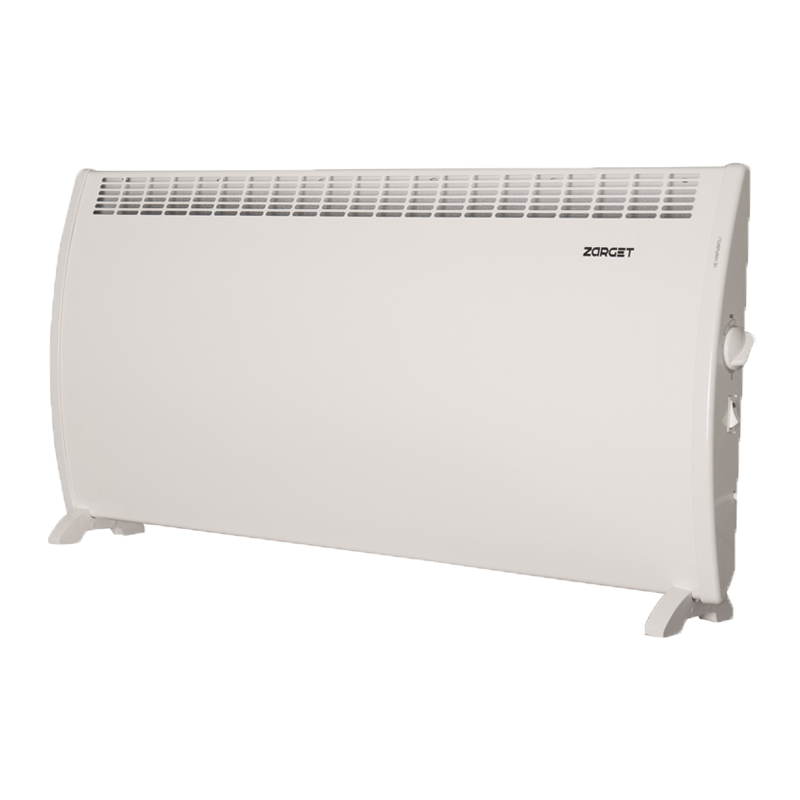 Конвектор Zarget ZCH 20E1 мощность обогрева : 2000 Вт; тип нагревательного элемента : ТЭН; площадь обогрева : 24 м2; управление : механическое; отключение при перегреве, установка : напольная; влагозащищенный корпус.