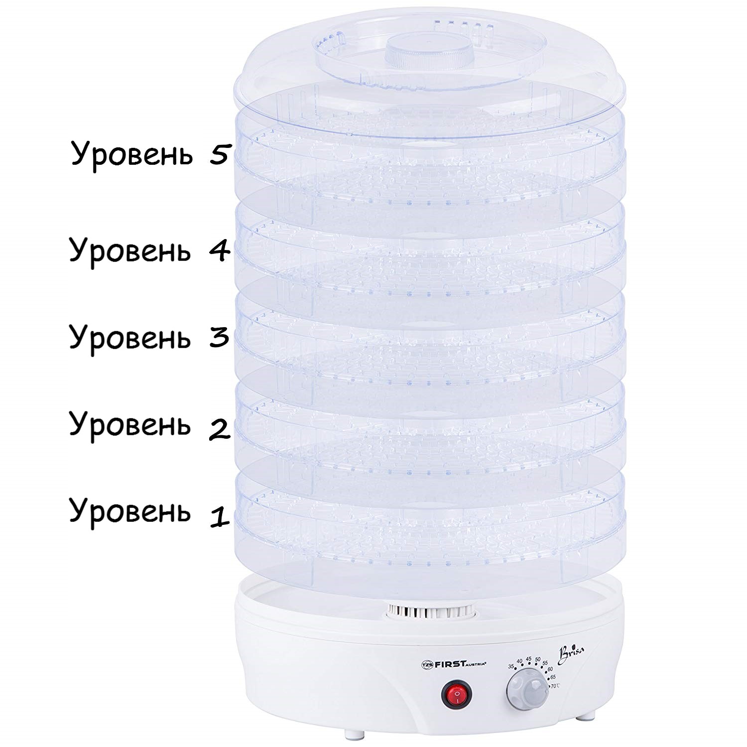 Сушилка для овощей и фруктов FIRST 5126-2 Мощность: 240 Вт.5 поддонов для сушки White