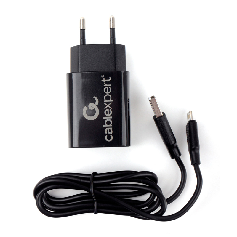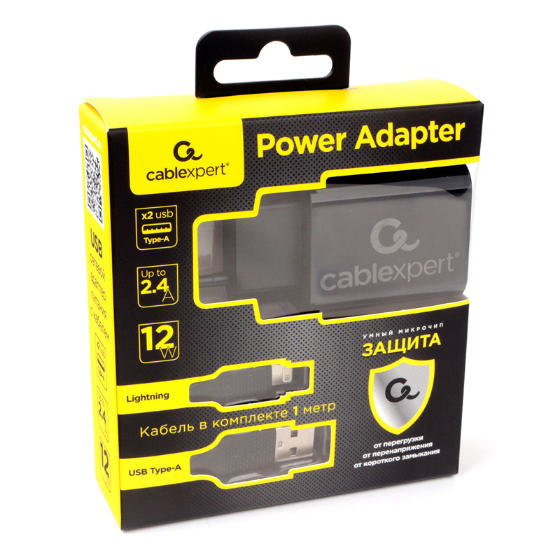 Зарядное устройство сетевое 2хUSB 2.4A Cablexpert MP3A-PC-36 черный + кабель 1м lightning