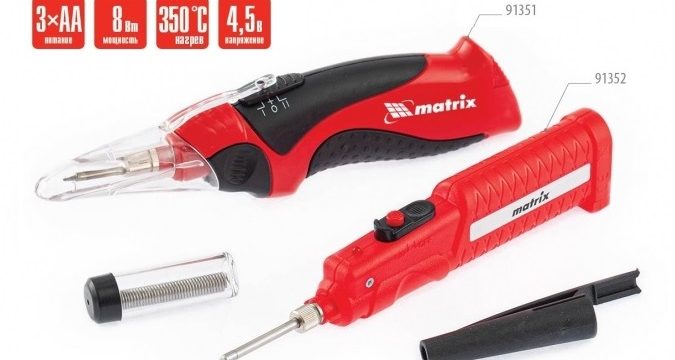 Паяльник беспроводной Matrix 8Вт, медный сплав с покрытием, 350°С, припой 10г., 3хАА (91352)
